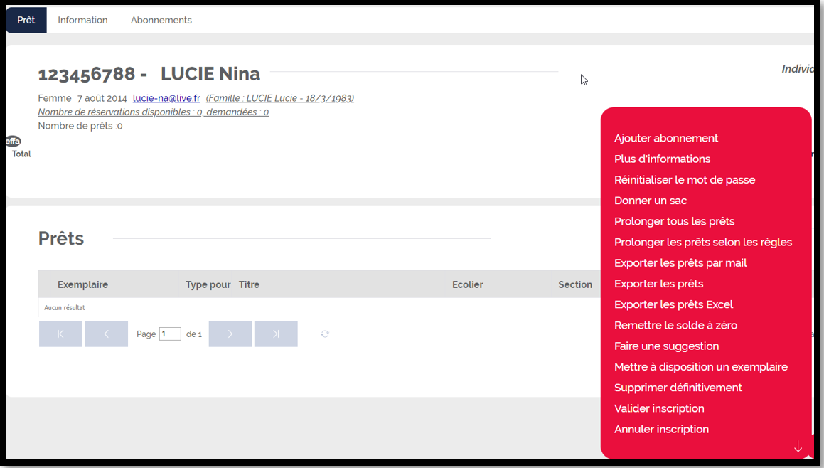 Vous pouvez aussi depuis la fiche de l'usager cliquer sur la flèche rouge en bas de page et ajouter un abonnement.