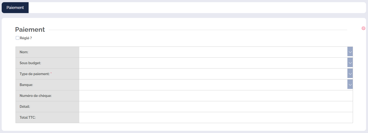 Deux tableaux sont affichés dans l'onglet Paiements :