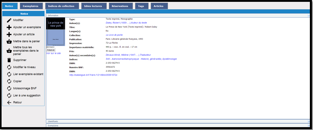 Si vous cliquez sur Manifestation, vous arrivez sur la page de notice du document.