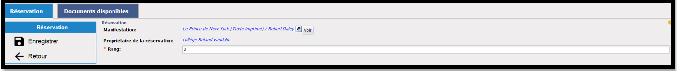 Vous pouvez changer le rang si vous le souhaitez, par exemple, l'usager ayant commandé le document, vient de renoncer à sa réservation.