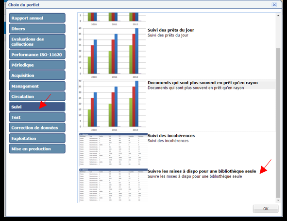 Cliquez sur Suivi, puis Suivre les mises à dispo pour une bibliothèque seule.