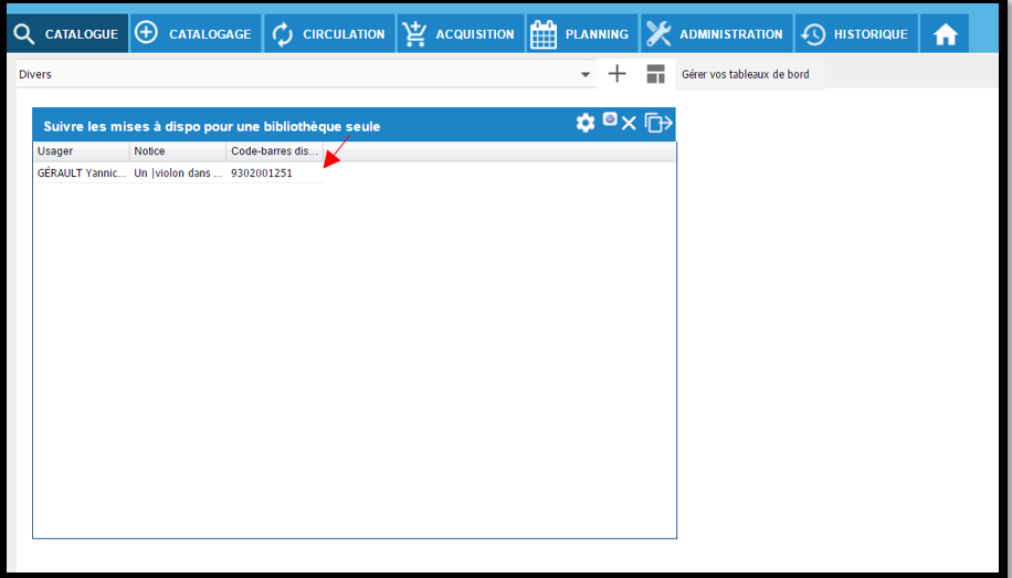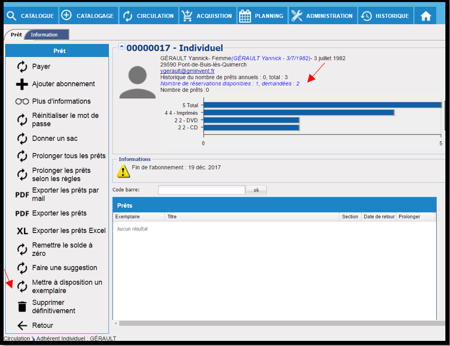 Lorsque l’usager réserve un livre, son nom apparaît sur ce portlet, c’est grâce à cela, que vous allez mettre à disposition le livre réservé.