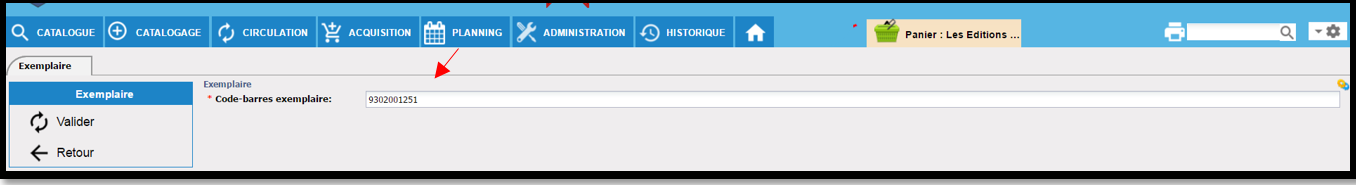 Collez le code-barres de l’exemplaire, puis cliquez sur Valider.