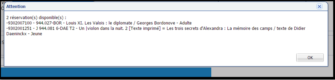 Voici le message qui vous indique du nombre de réservations que l’usager a fait.